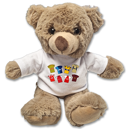 Featuring classic retro shirts from throughout the years printed on the bear’s t-shirt.