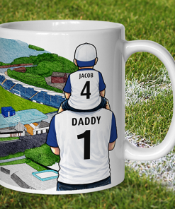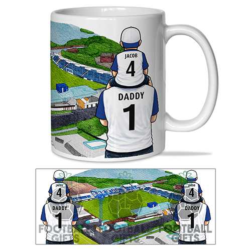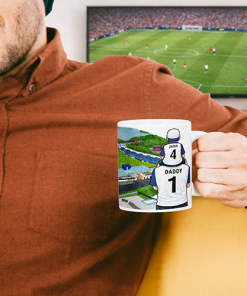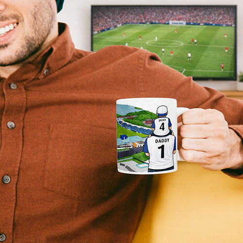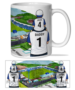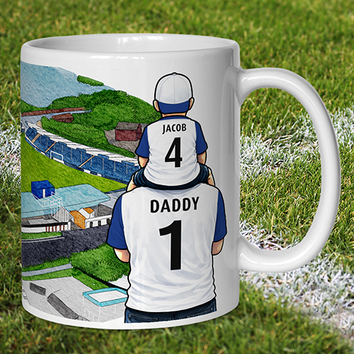 Each mug depicts a detailed print of a water colour painting of the stadium and an image of Father & Son that can be personalised with names & numbers of your choice.