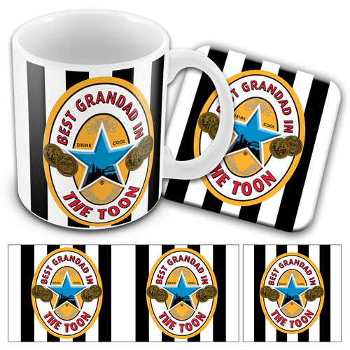 Best Grandad In The Toon Newcastle Utd Retro Shirt Mug & Coaster Set