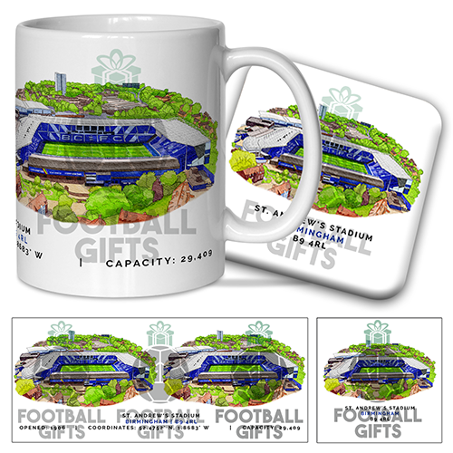 Birmingham City Around The Grounds St Andrews Stadium Water Colour Mug & Coaster Set