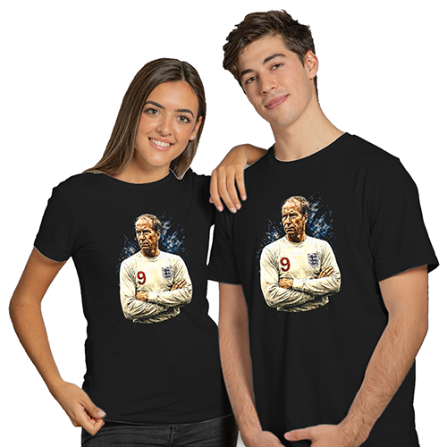 Bobby Charlton Black T-Shirt Splash World Cup Legends T-Shirt