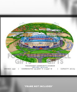 Each piece depicts a detailed print of a water colour painting of the stadium,  with the stadium details printed underneath including the stadium name, capacity, grid coordinates & the year it was built.
