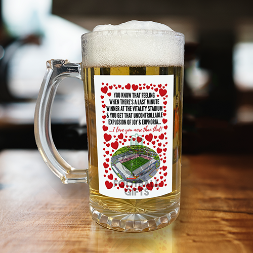 Bournemouth Beer Glass I Love you More Than That Love Hearts Beer Glass