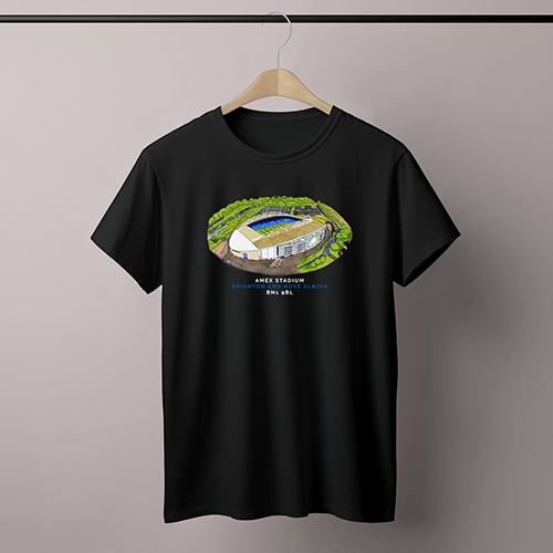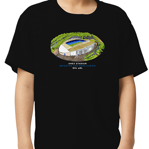 Brighton Around The Grounds Amex Stadium Water Colour Black T-Shirt