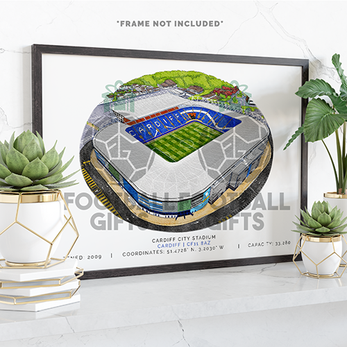 Cardiff Around The Grounds Cardiff City Stadium Water Colour Print Framed Print