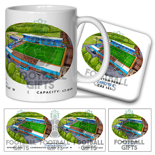 Carlisle Utd Around The Grounds Brunton Park Stadium Water Colour Mug & Coaster Set