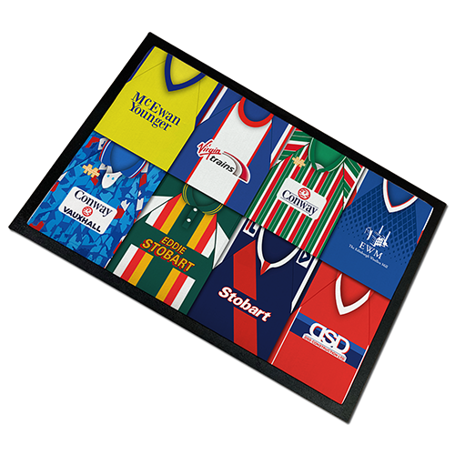 Our Retro Kit Montage Door Mats are created by our in house design team and are unofficial and unlicensed merchandise. Our Classic Kits are NOT endorsed by any individual, team, group, club, management company etc.