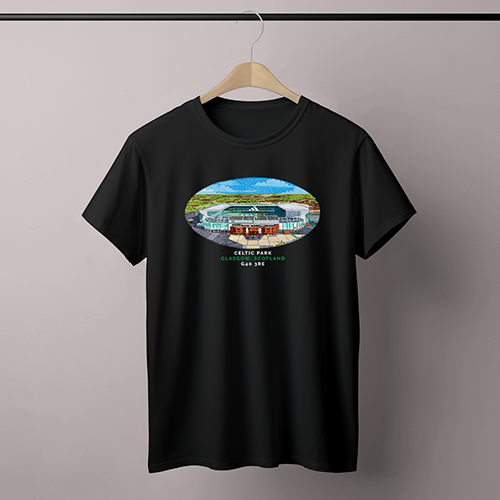 Celtic Around The Grounds Celtic Park Water Colour Black T-Shirt