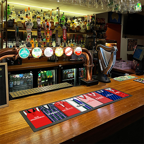Show your support for your club with one of our eye catching bar runners. Perfect for any venue including your home, pub, club, bar, restaurant, man cave, shop, birthday parties.