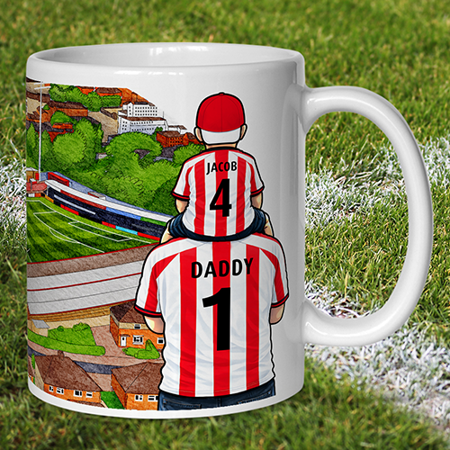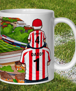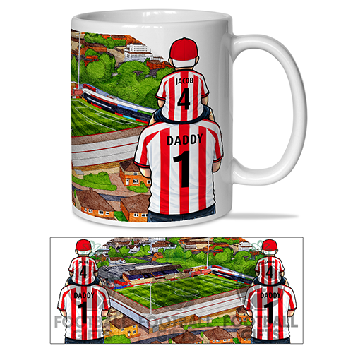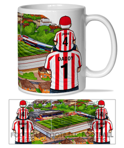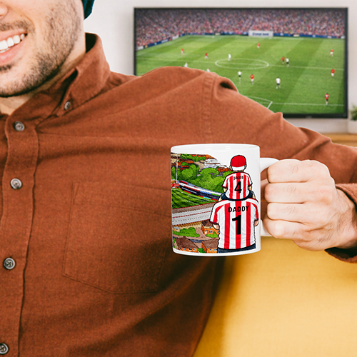 Each mug depicts a detailed print of a water colour painting of the stadium and an image of Father & Son that can be personalised with names & numbers of your choice.