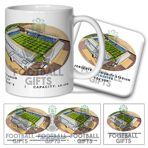 Colchester United Around The Grounds JobServe Community Stadium Water Colour Mug & Coaster Set