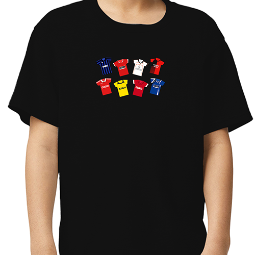 Fantastic Black Retro Shirts T-shirt a great gift for all fans – featuring various classic kits from throughout the years.