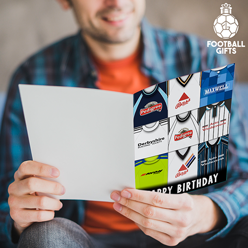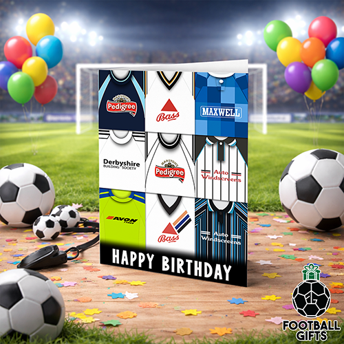 Derby County Happy Birthday Greeting Card Retro Shirt Montage Classic Kits