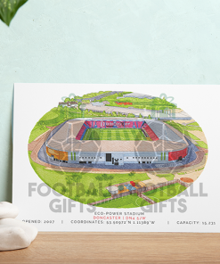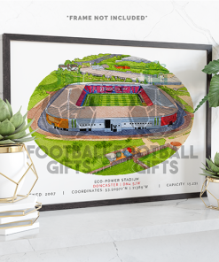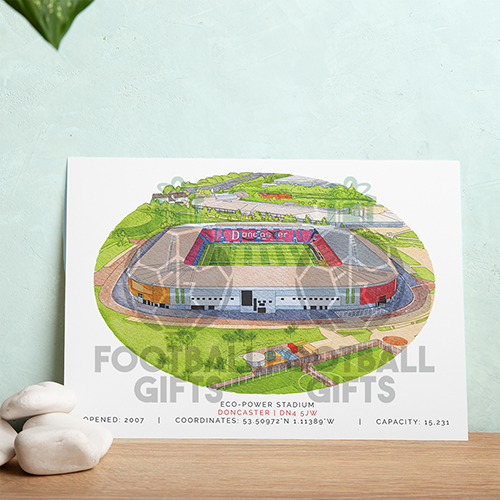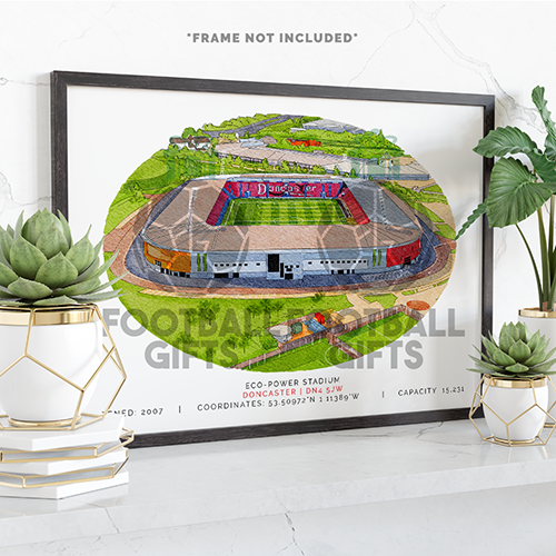 Doncaster Rovers Around The Grounds Eco-Power Stadium Water Colour Print Framed Print
