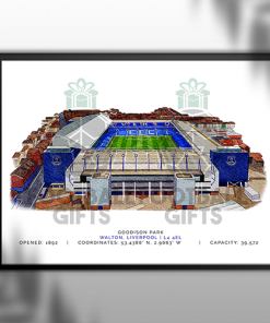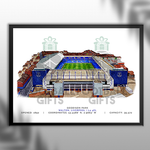 Everton Around The Grounds Goodison Park Water Colour Print Framed Print