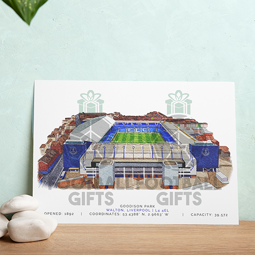 Each piece depicts a detailed print of a water colour painting of the stadium,  with the stadium details printed underneath including the stadium name, capacity, grid coordinates & the year it was built.