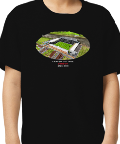 Fulham Around The Grounds Craven Cottage Water Colour Black T-Shirt