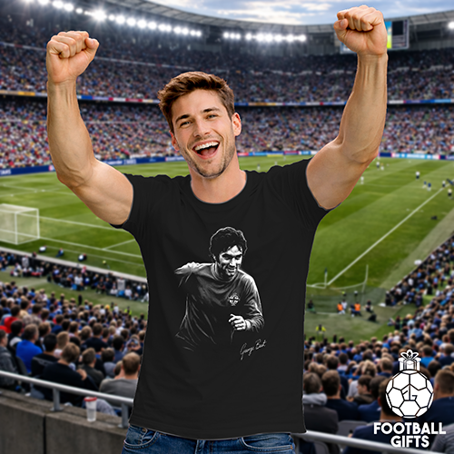 George Best Black T-Shirt B&W World Cup Legends T-Shirt