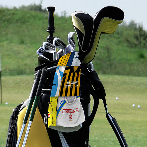 Our Golf towels are handcrafted in the UK using 300gsm microfibre towelling, which is lighter & more absorbent than cotton towels.