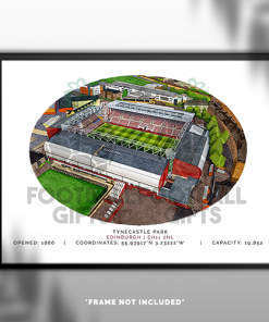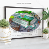 Each piece depicts a detailed print of a water colour painting of the stadium,  with the stadium details printed underneath including the stadium name, capacity, grid coordinates & the year it was built.