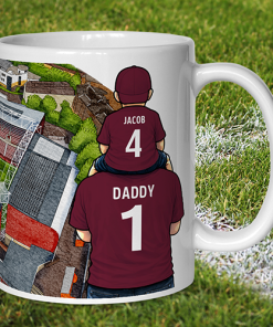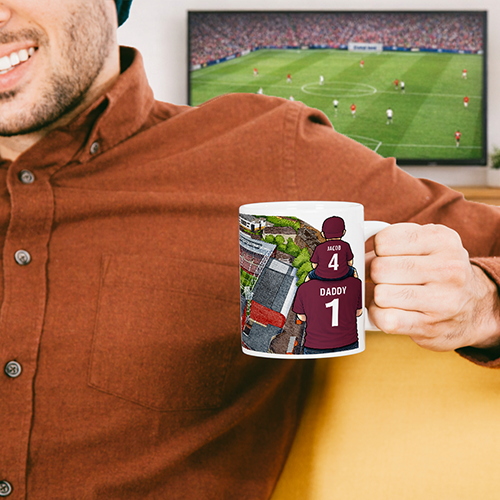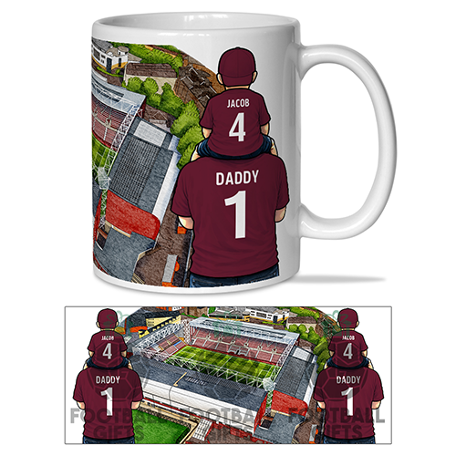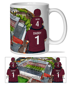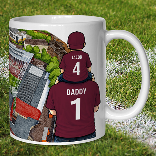 Each mug depicts a detailed print of a water colour painting of the stadium and an image of Father & Son that can be personalised with names & numbers of your choice.