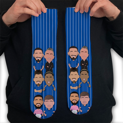 Our socks are created by our in house design team and are unofficial and unlicensed merchandise. Our football gifts are NOT endorsed by any individual, team, group, club, management company etc.