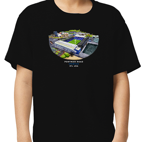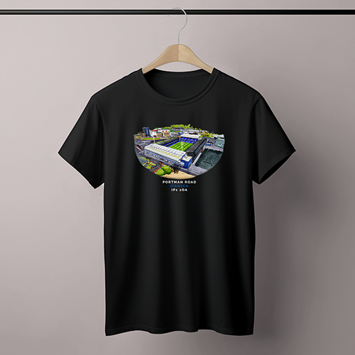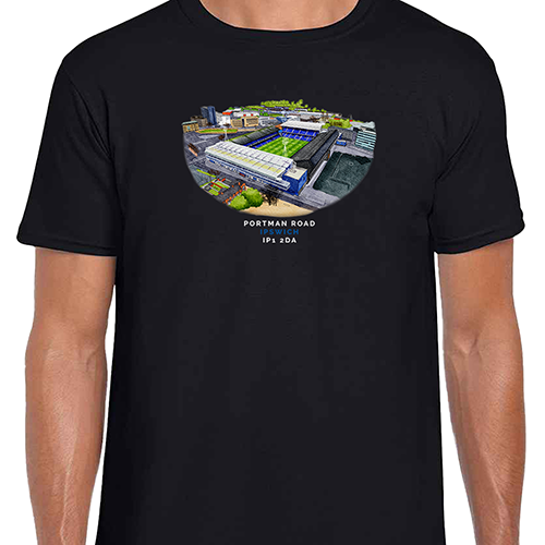 Ipswich Town Around The Grounds Portman Road Water Colour Black T-Shirt
