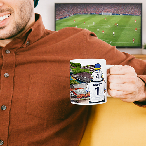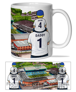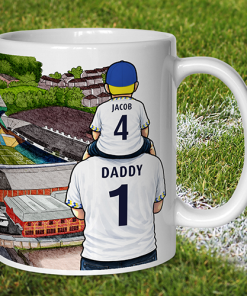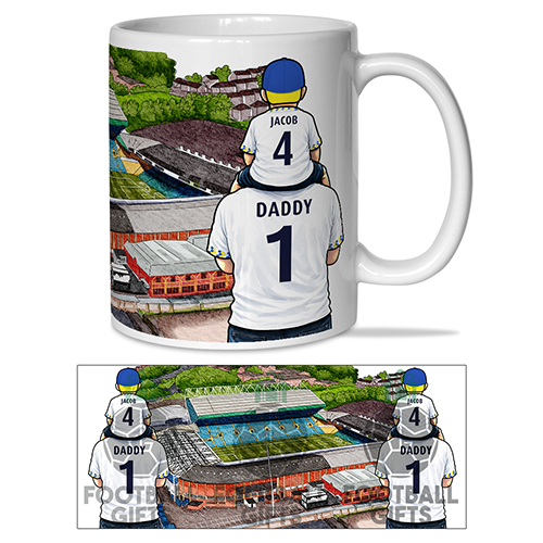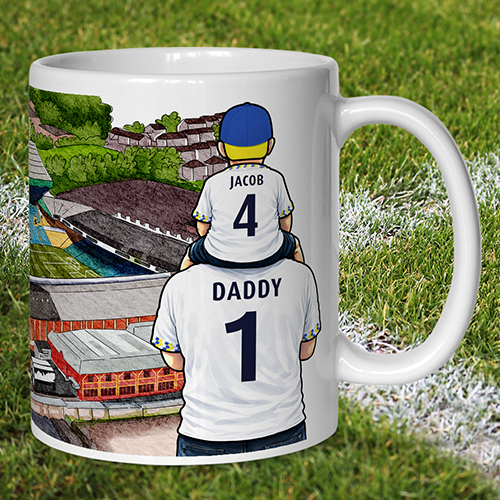 Each mug depicts a detailed print of a water colour painting of the stadium and an image of Father & Son that can be personalised with names & numbers of your choice.