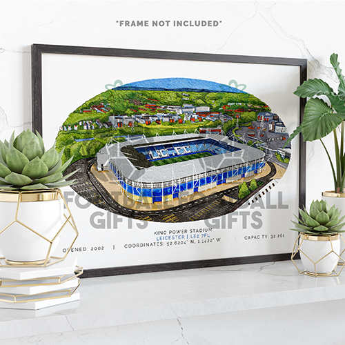 Leicester City Around The Grounds King Power Stadium Water Colour Print Framed Print