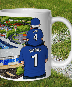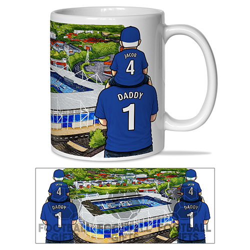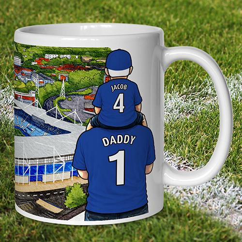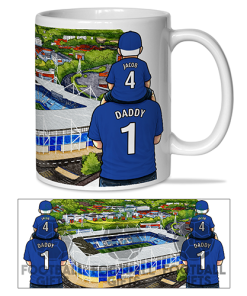 Each mug depicts a detailed print of a water colour painting of the stadium and an image of Father & Son that can be personalised with names & numbers of your choice.