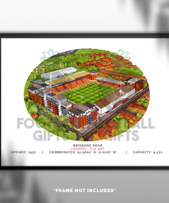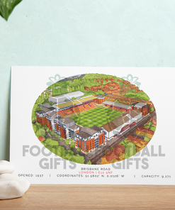 Each piece depicts a detailed print of a water colour painting of the stadium,  with the stadium details printed underneath including the stadium name, capacity, grid coordinates & the year it was built.