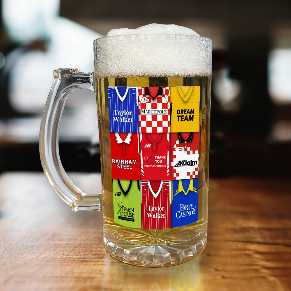 Our range of football beer glasses/ steins create a fantastic & long lasting print with vibrant colours.