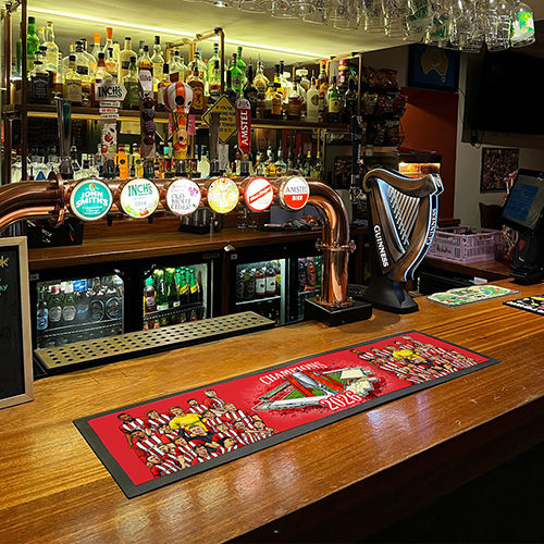 Our bar runners are created by our in house design team and are unofficial and unlicensed merchandise. Our bar runner mats are NOT endorsed by any individual, team, group, club, management company etc.