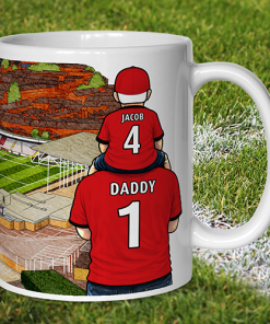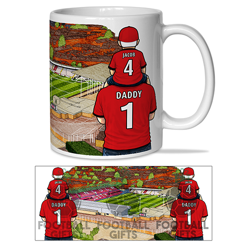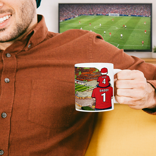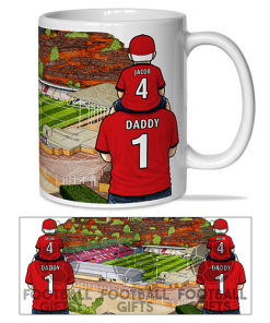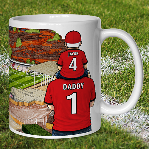 Each mug depicts a detailed print of a water colour painting of the stadium and an image of Father & Son that can be personalised with names & numbers of your choice.