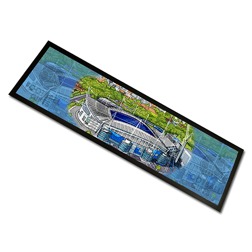 Man City Around The Grounds Etihad Stadium Water Colour Bar Runner Mat