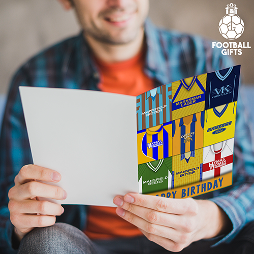 Mansfield Town Happy Birthday Greeting Card Retro Shirt Montage Classic Kits