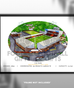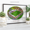 Each piece depicts a detailed print of a water colour painting of the stadium,  with the stadium details printed underneath including the stadium name, capacity, grid coordinates & the year it was built.