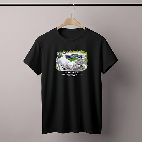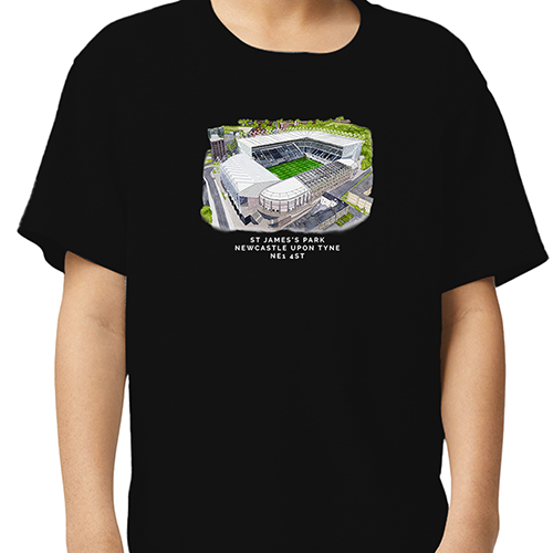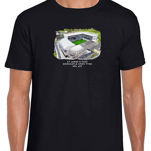 Newcastle Around The Grounds St James’ Park Water Colour Black T-Shirt