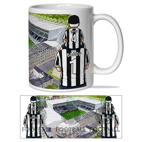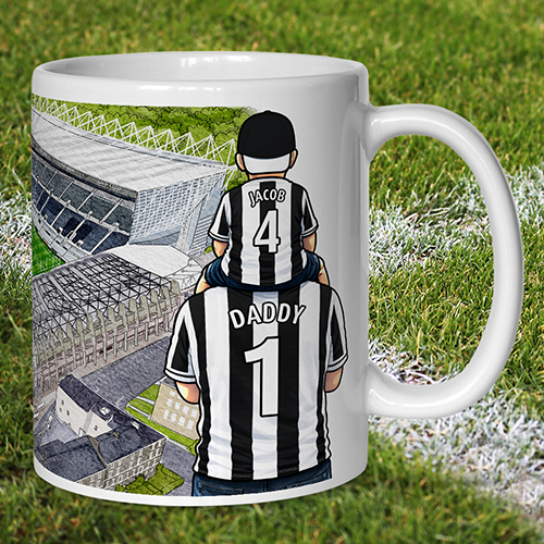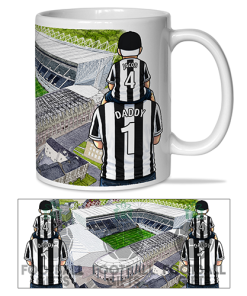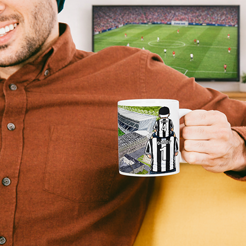 Each mug depicts a detailed print of a water colour painting of the stadium and an image of Father & Son that can be personalised with names & numbers of your choice.