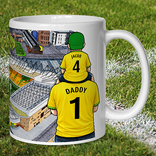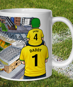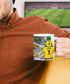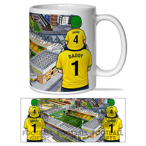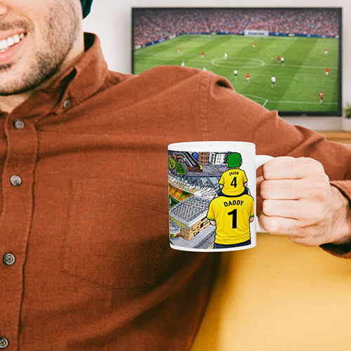 Each mug depicts a detailed print of a water colour painting of the stadium and an image of Father & Son that can be personalised with names & numbers of your choice.