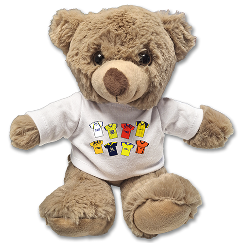 Featuring classic retro shirts from throughout the years printed on the bear’s t-shirt.