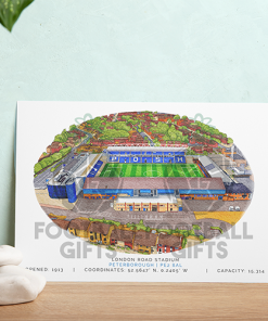 Each piece depicts a detailed print of a water colour painting of the stadium,  with the stadium details printed underneath including the stadium name, capacity, grid coordinates & the year it was built.