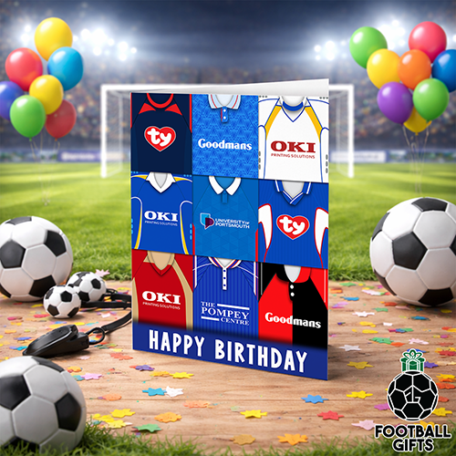 Portsmouth Happy Birthday Greeting Card Retro Shirt Montage Classic Kits