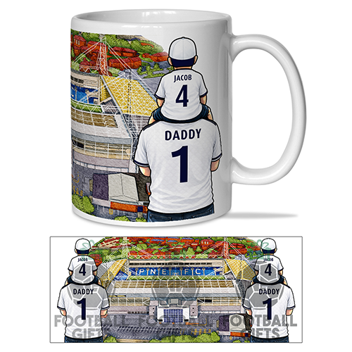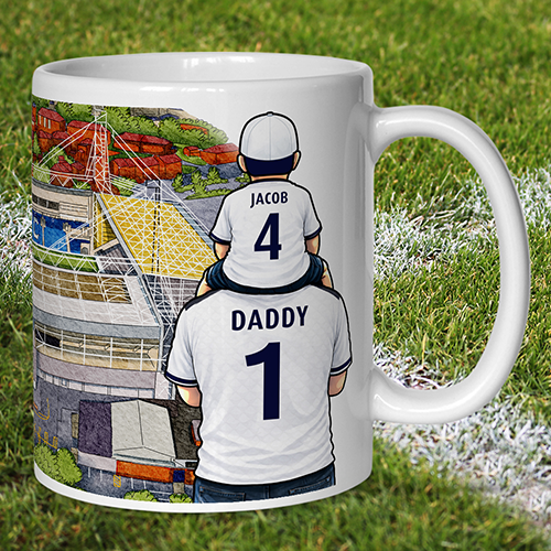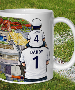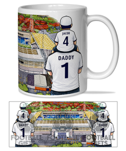 Each mug depicts a detailed print of a water colour painting of the stadium and an image of Father & Son that can be personalised with names & numbers of your choice.