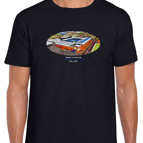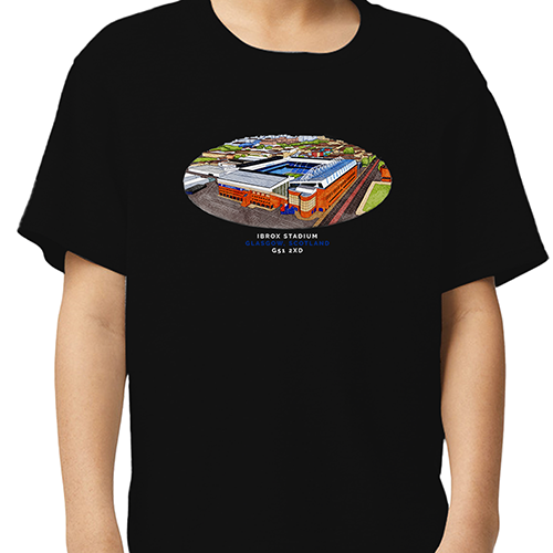 Rangers Around The Grounds Ibrox Stadium Water Colour Black T-Shirt