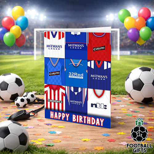 Rangers Happy Birthday Greeting Card Retro Shirt Montage Classic Kits