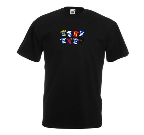 Fantastic Black T-shirt a great gift for all fans – featuring various classic kits from throughout the years.