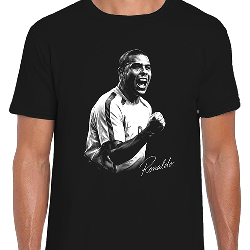 Ronaldo Brazil Black T-Shirt B&W World Cup Legends T-Shirt