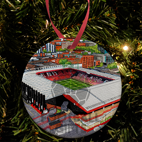 Charlton Stadium Water Colour Christmas Tree Decoration Bauble By Sam Edwards Artist