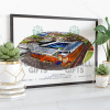Each piece depicts a detailed print of a water colour painting of the stadium,  with the stadium details printed underneath including the stadium name, capacity, grid coordinates & the year it was built.